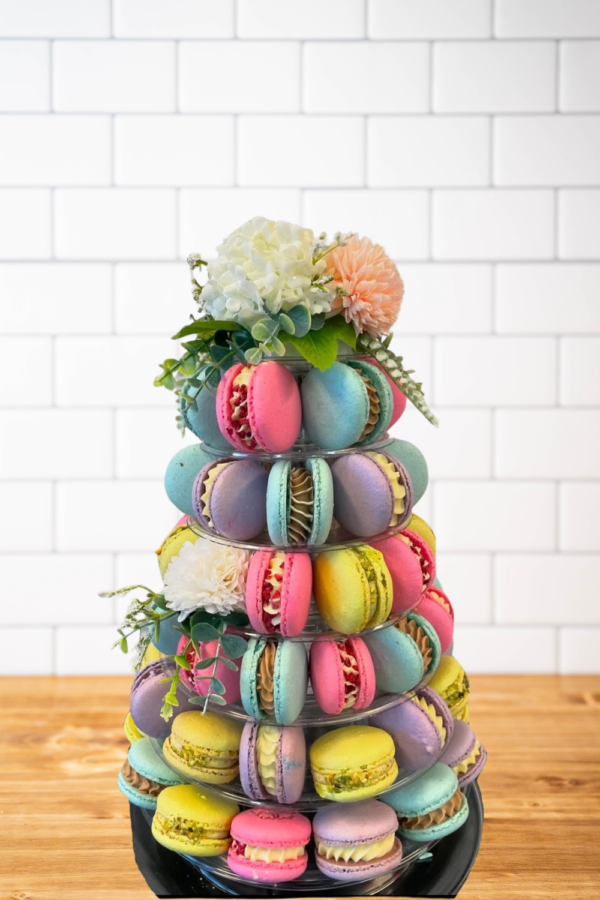Elegantti ja herkullinen macaron-torni tekee juhlistasi unohtumattomat. Valitse 5–9 tasoa kauniisti aseteltuja gluteenittomia macaroneja.